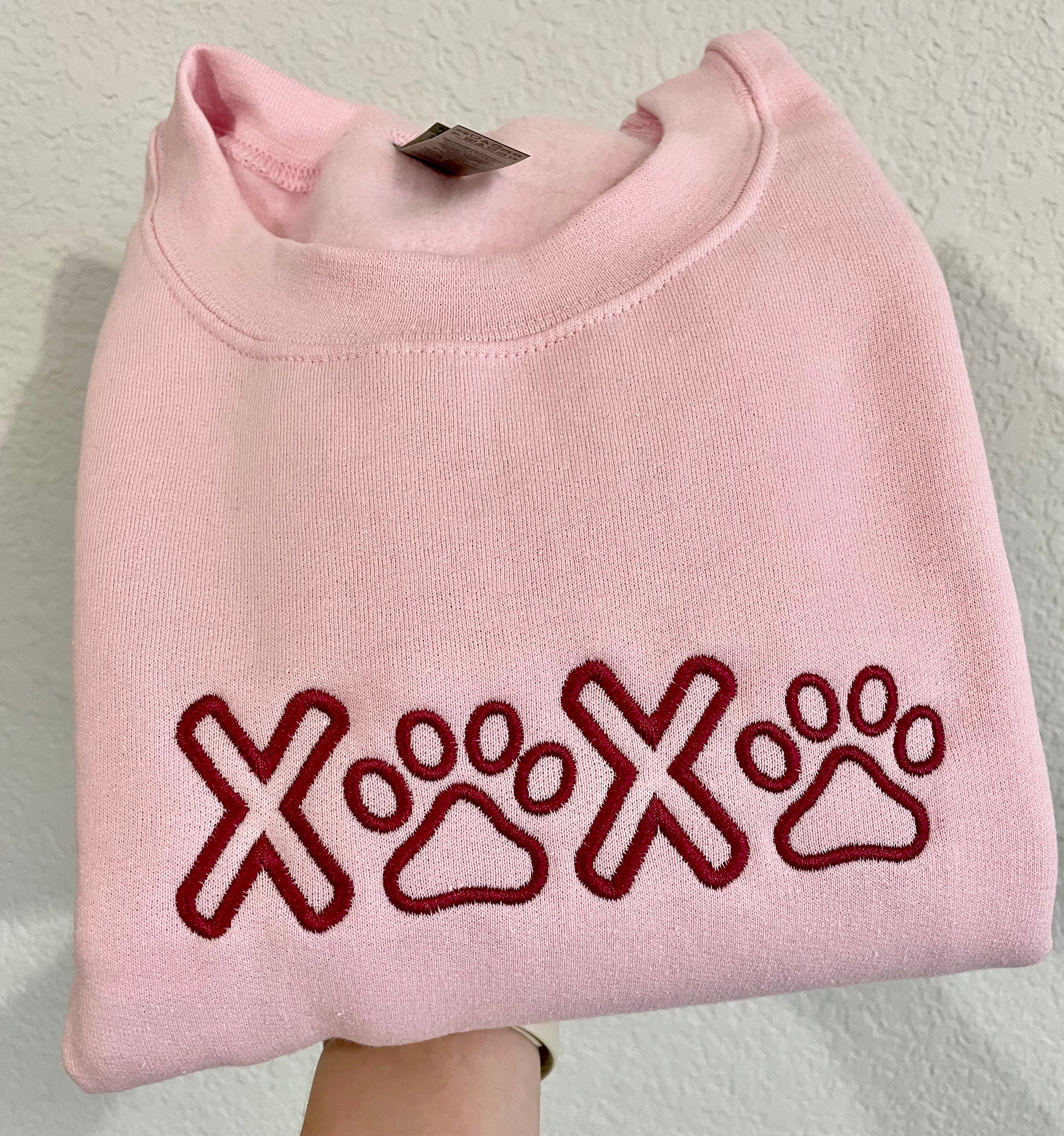 Light Pink Embroidered CrewneckOur simple and sweet embroidered crewnecks are the perfect dog mom accessory for everyday wear. Choose a pre-designed style or customize your wording to fit your dog mom vibe! (max 20 characters). Custom wording is one line across the chest. See product pictures for some cute suggestions or message me for advice :)