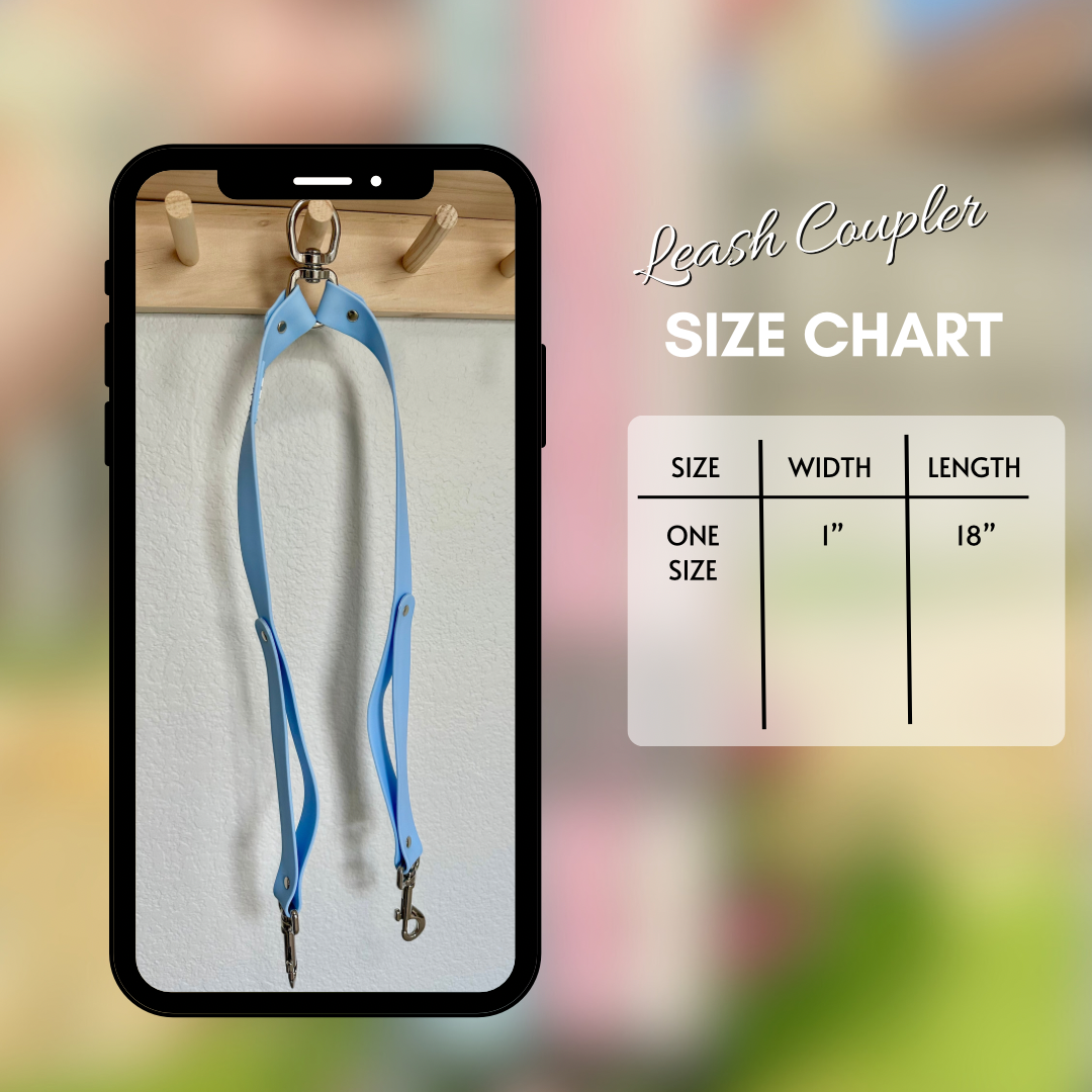 Leash Coupler- Baby BlueWalk two dogs at the same time with ease using this leash coupler! This listing is for the leash coupler ONLY. *Hands free adjustable leash sold separately*