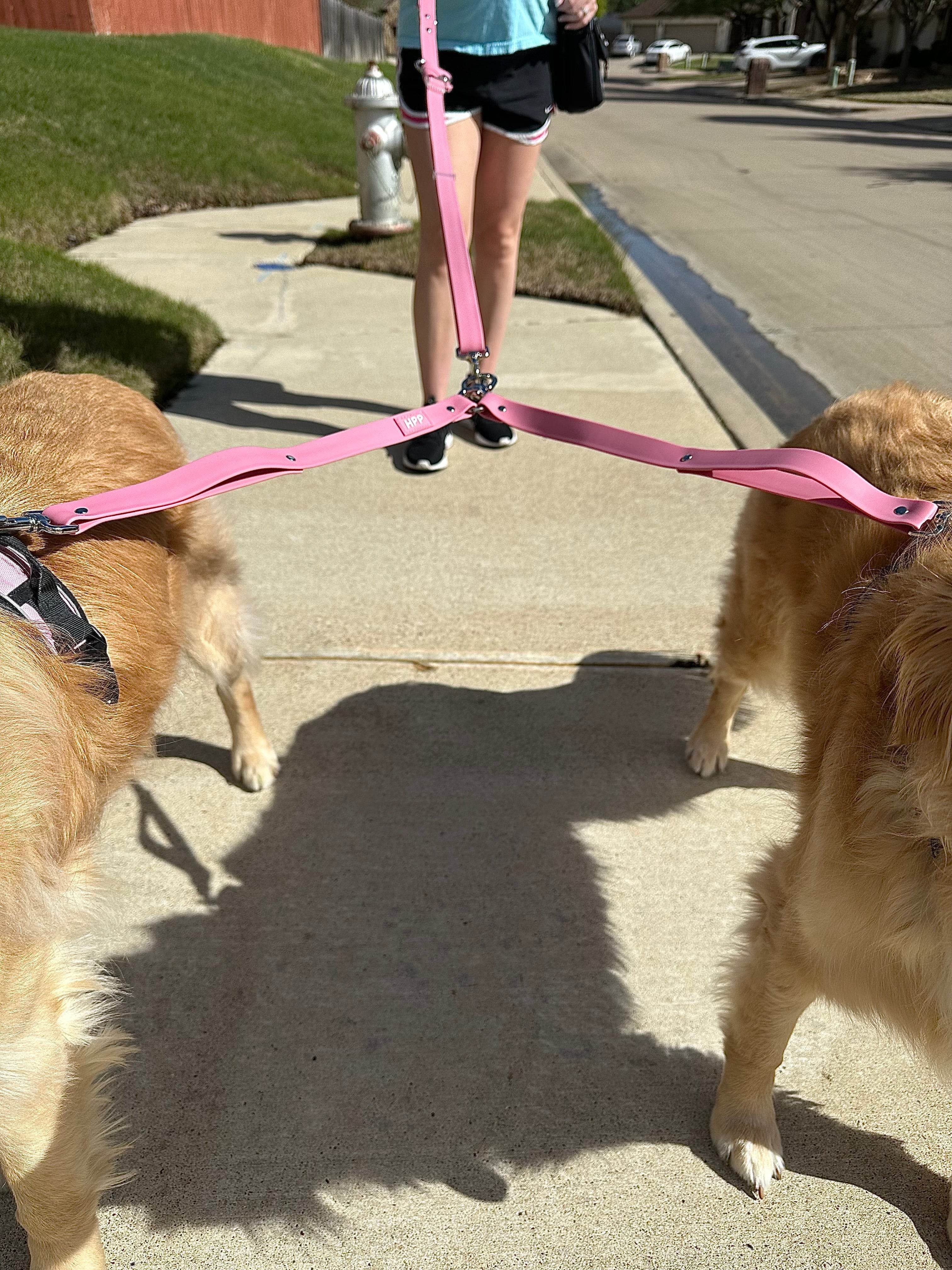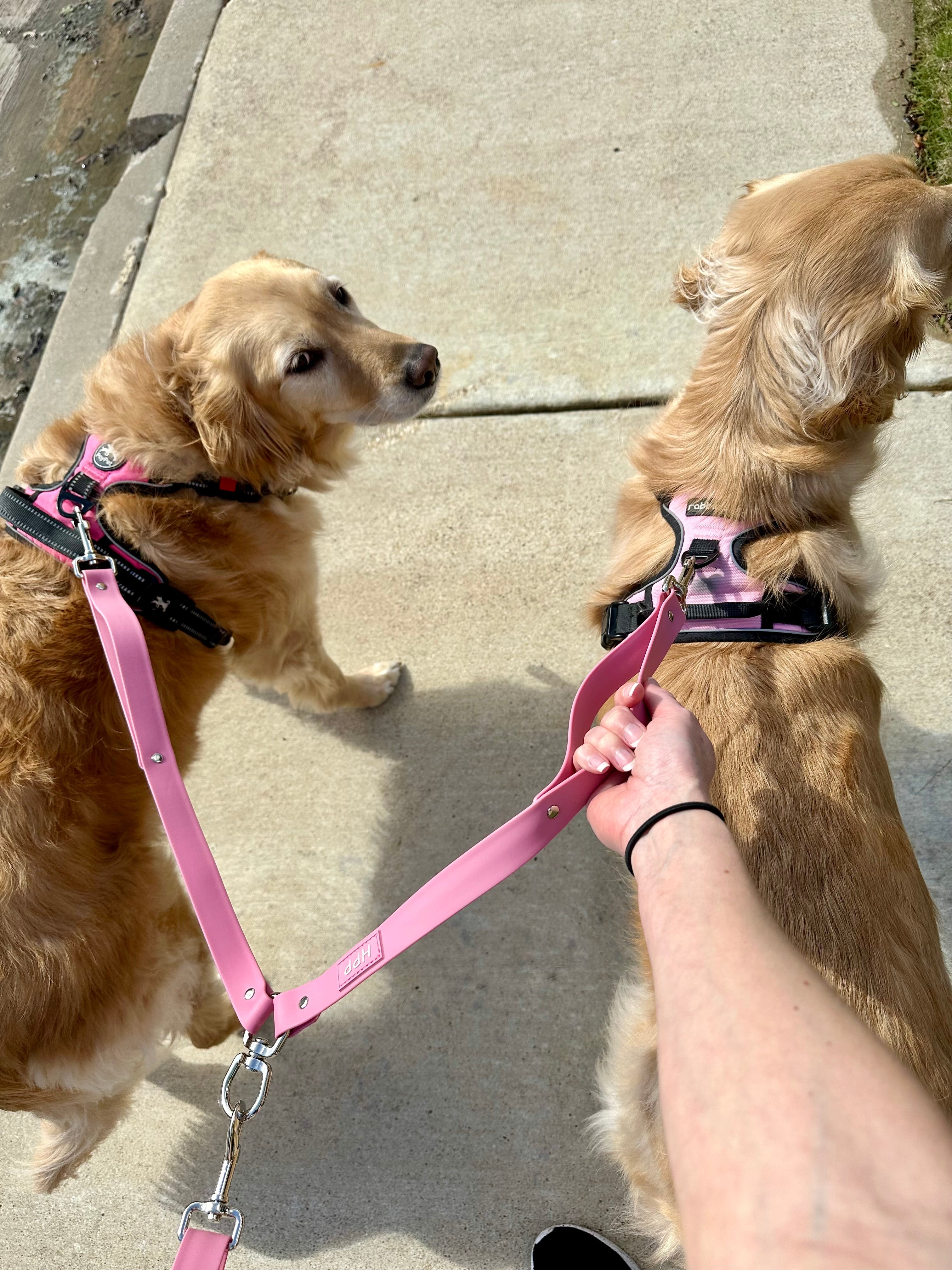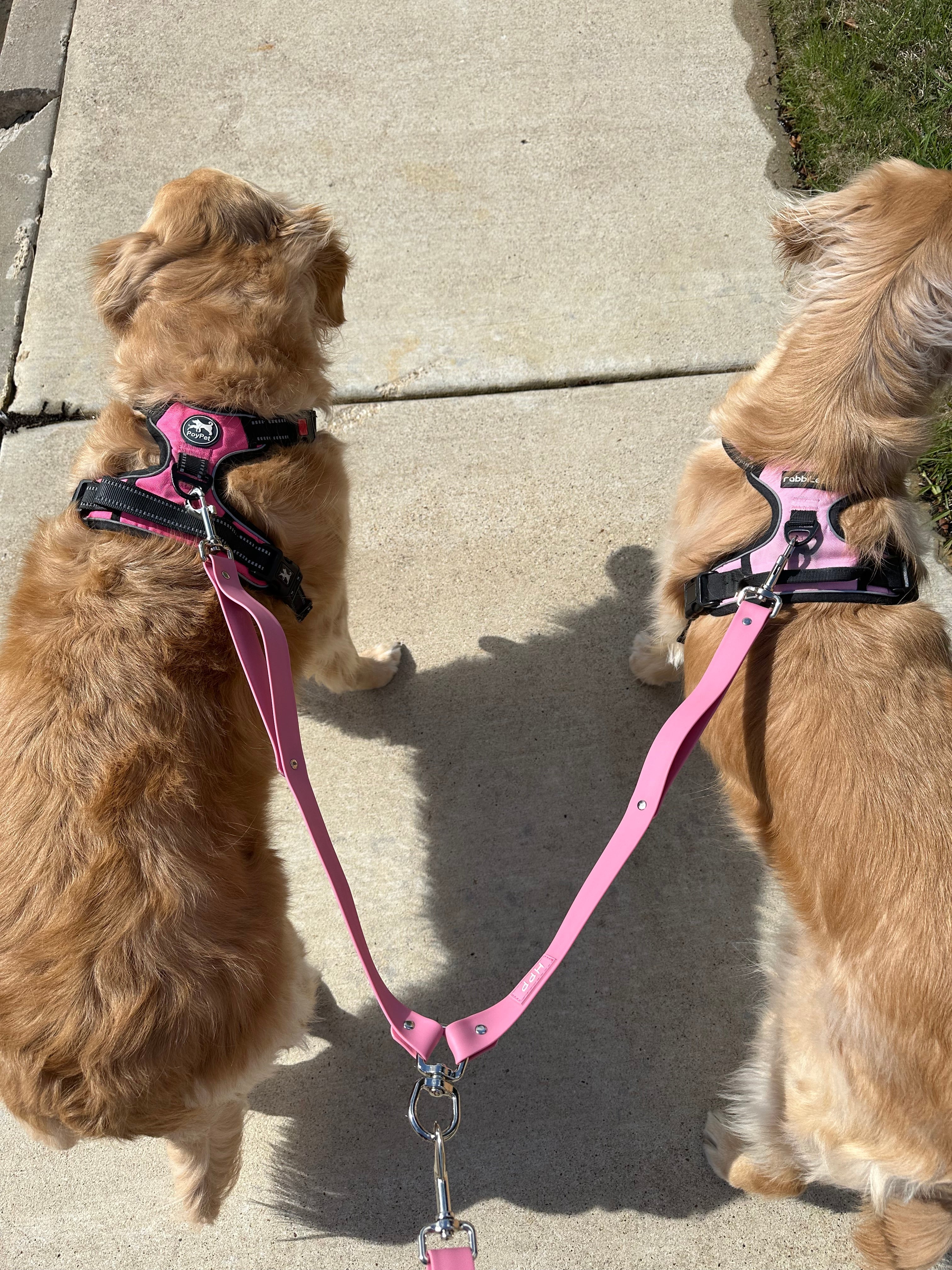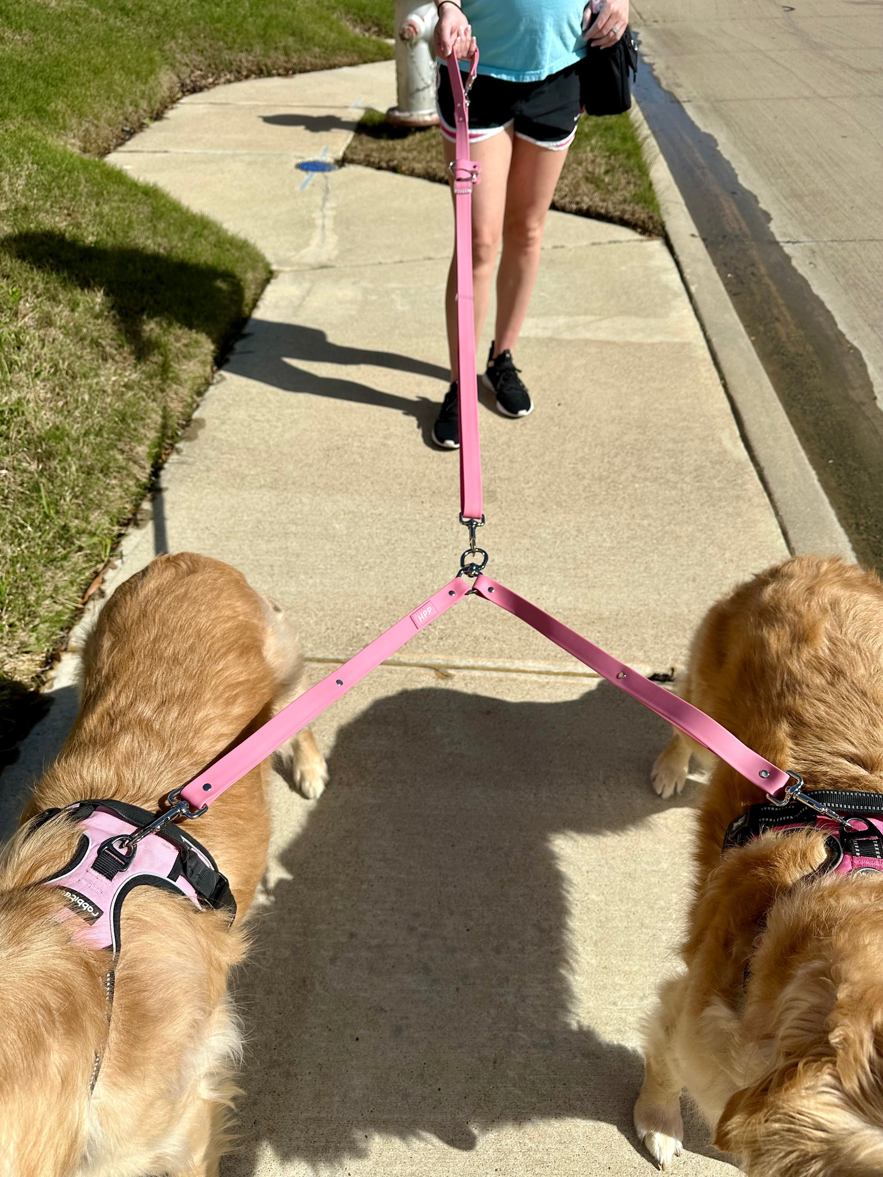 Walk two dogs at the same time with ease using this leash coupler! This listing is for the leash coupler ONLY. *Hands free adjustable leash sold separately*